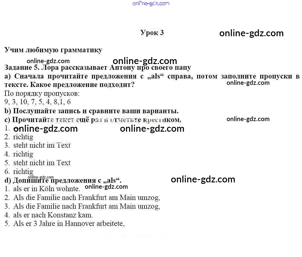 Готовые домашние задания по Немецкому языку за 7 класс Учебник Радченко, Конго Wunderkinder 2016 - Уроки 1-8 Глава 5. Город и деревня 5