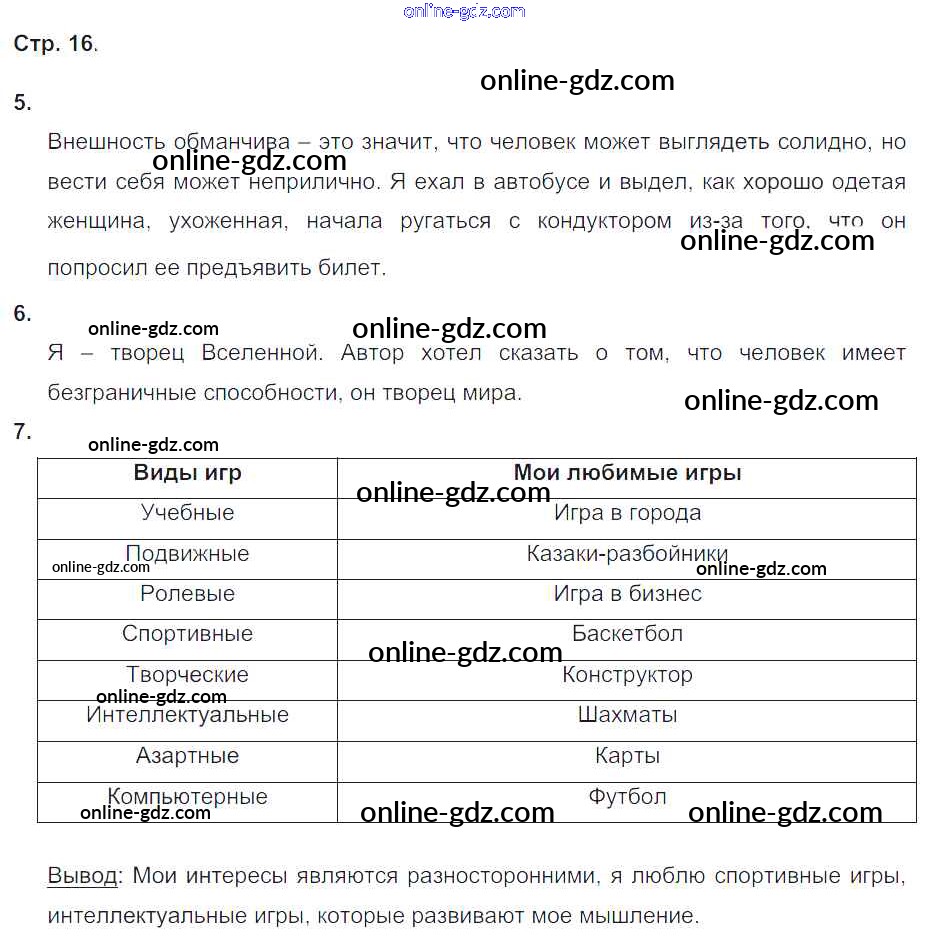 Готовые домашние задания по Обществознанию за 5 класс Рабочая тетрадь Болотина, Мишина Вертикаль 2019 - Тема 1. О человеке стр. 16