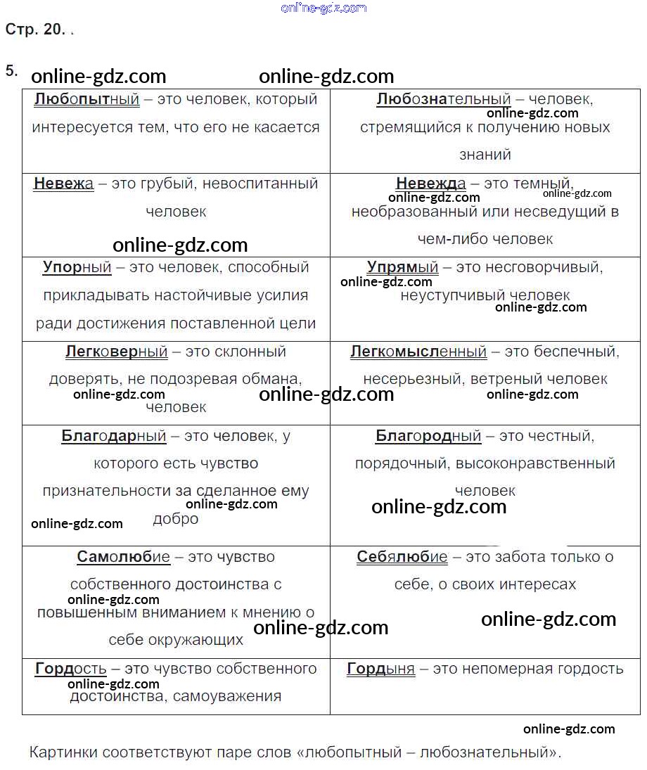 Готовые домашние задания по Обществознанию за 5 класс Рабочая тетрадь Болотина, Мишина Вертикаль 2019 - Тема 1. О человеке стр. 20