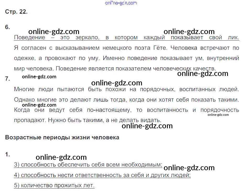 Готовые домашние задания по Обществознанию за 5 класс Рабочая тетрадь Болотина, Мишина Вертикаль 2019 - Тема 1. О человеке стр. 22
