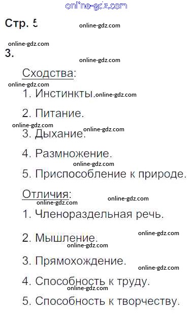 Готовые домашние задания по Обществознанию за 5 класс Рабочая тетрадь Болотина, Мишина Вертикаль 2019 - Тема 1. О человеке стр. 5