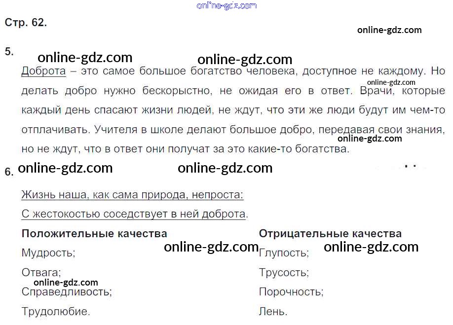 Готовые домашние задания по Обществознанию за 5 класс Рабочая тетрадь Болотина, Мишина Вертикаль 2019 - Тема 1. О человеке стр. 62