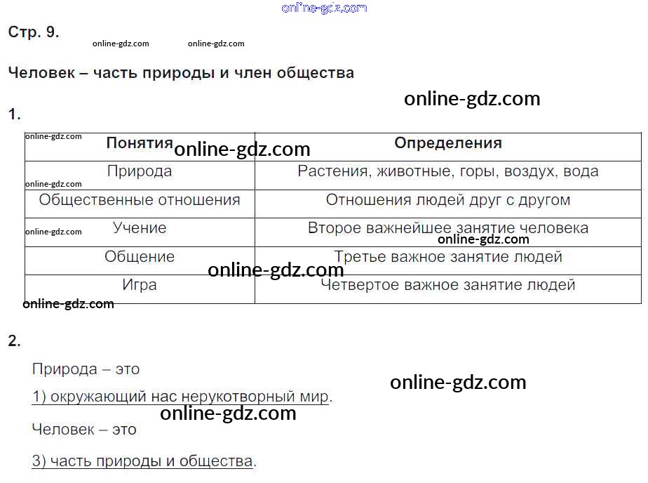 Готовые домашние задания по Обществознанию за 5 класс Рабочая тетрадь Болотина, Мишина Вертикаль 2019 - Тема 1. О человеке стр. 9