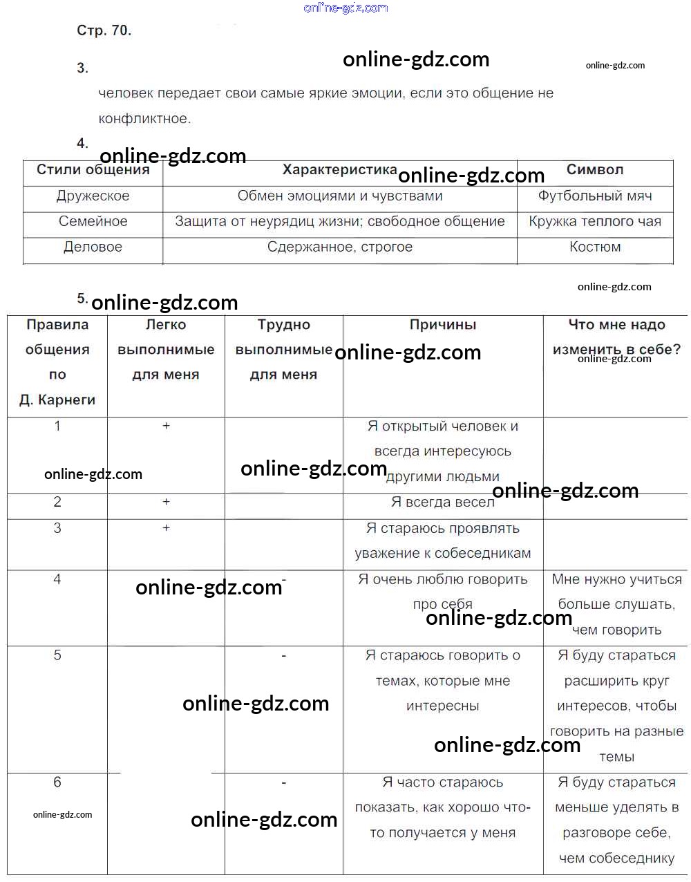 Готовые домашние задания по Обществознанию за 5 класс Рабочая тетрадь Болотина, Мишина Вертикаль 2019 - Тема 2. Общение и окружение человека стр. 70