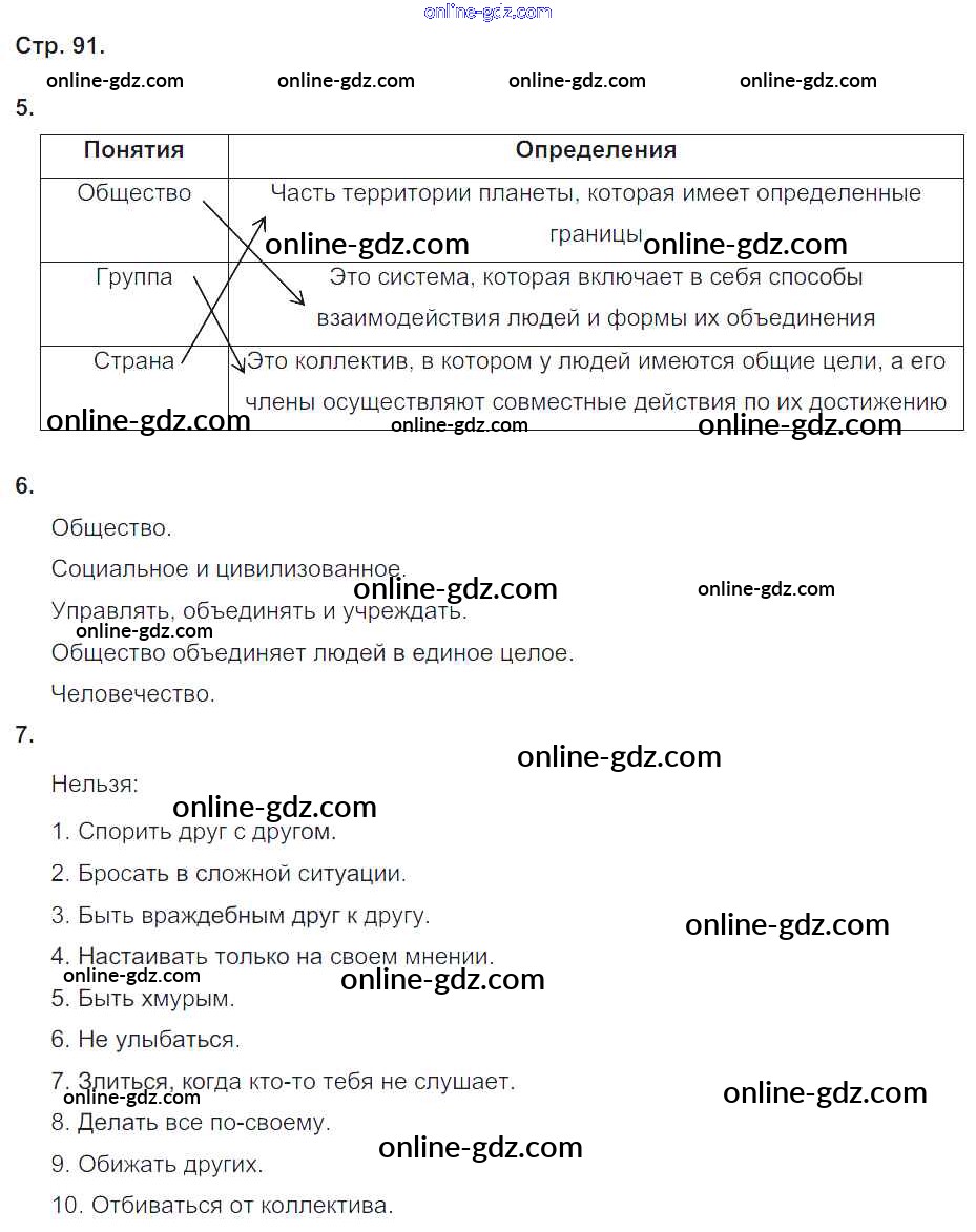 Готовые домашние задания по Обществознанию за 5 класс Рабочая тетрадь Болотина, Мишина Вертикаль 2019 - Тема 2. Общение и окружение человека стр. 91
