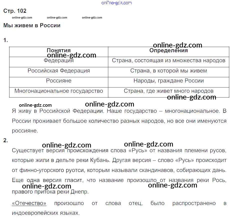 Готовые домашние задания по Обществознанию за 5 класс Рабочая тетрадь Болотина, Мишина Вертикаль 2019 - Тема 3. Наша Родина - Россия - Российская Федерация стр. 102