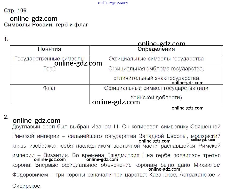 Готовые домашние задания по Обществознанию за 5 класс Рабочая тетрадь Болотина, Мишина Вертикаль 2019 - Тема 3. Наша Родина - Россия - Российская Федерация стр. 106