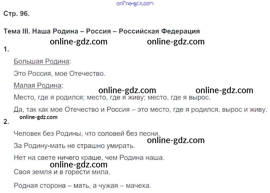Готовые домашние задания по Обществознанию за 5 класс Рабочая тетрадь Болотина, Мишина Вертикаль 2019 - Тема 3. Наша Родина - Россия - Российская Федерация стр. 96