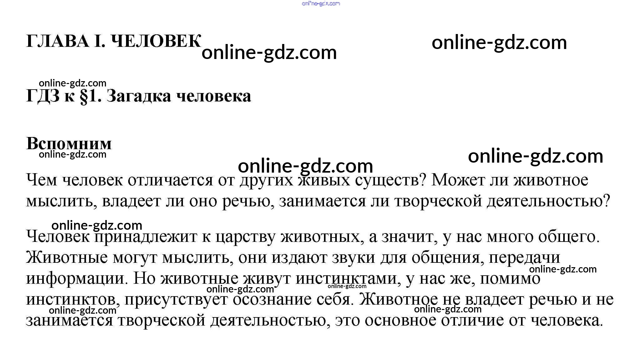 Готовые домашние задания по Обществознанию за 5 класс Учебник Боголюбов, Виноградова 2013 - Вспомним §1. Загадка человека 1