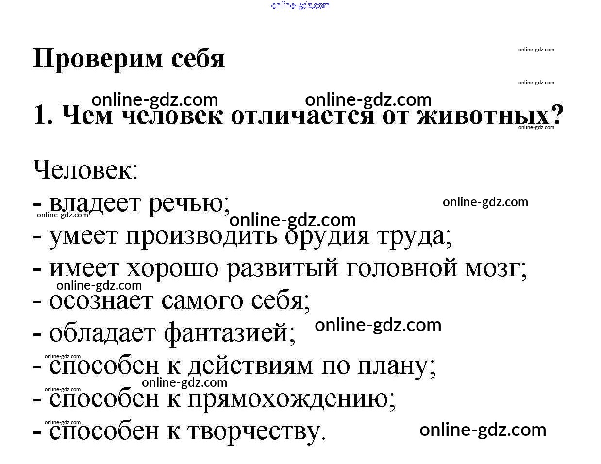 Готовые домашние задания по Обществознанию за 5 класс Учебник Боголюбов, Виноградова 2013 - Проверим себя §1. Загадка человека 1