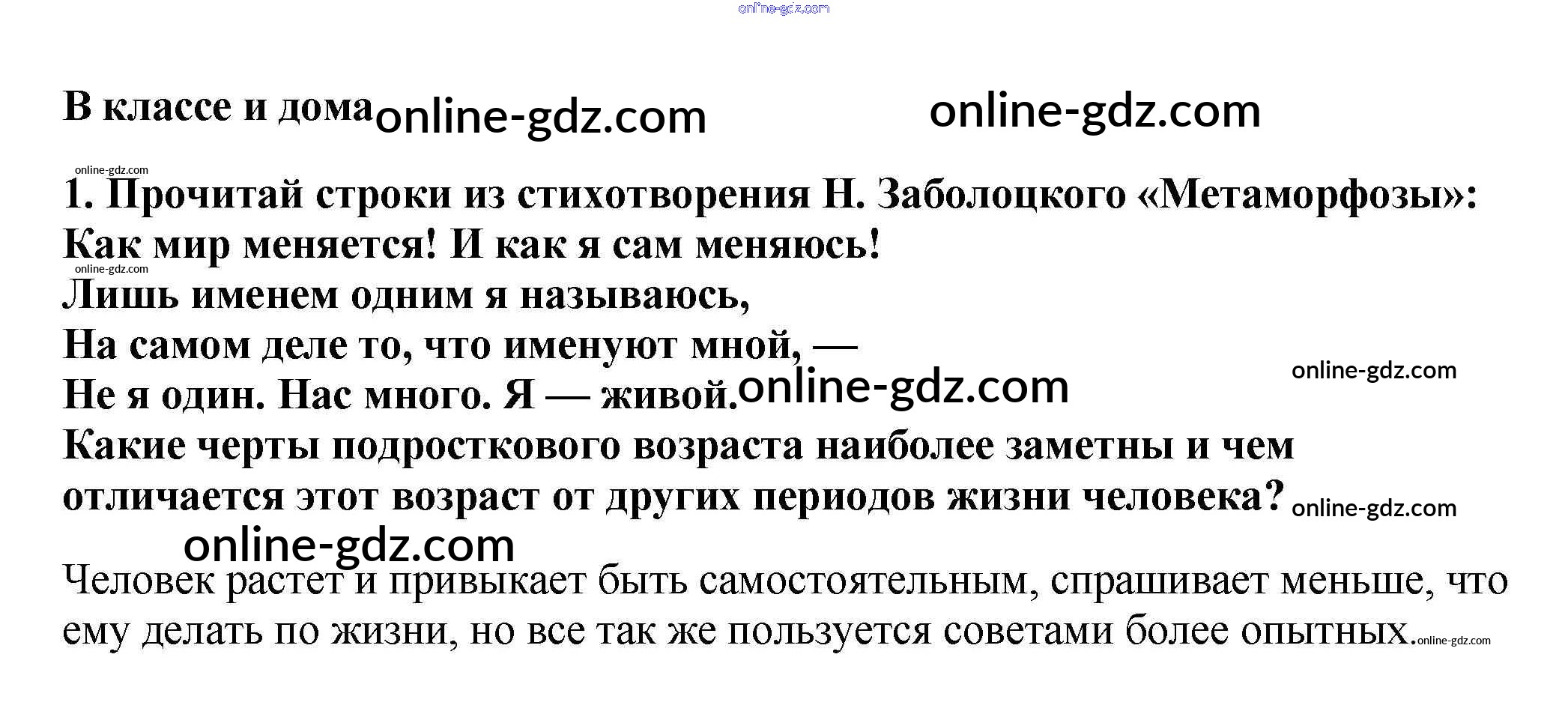 Готовые домашние задания по Обществознанию за 5 класс Учебник Боголюбов, Виноградова 2013 - В классе и дома §2. Отрочество — особая пора жизни 1
