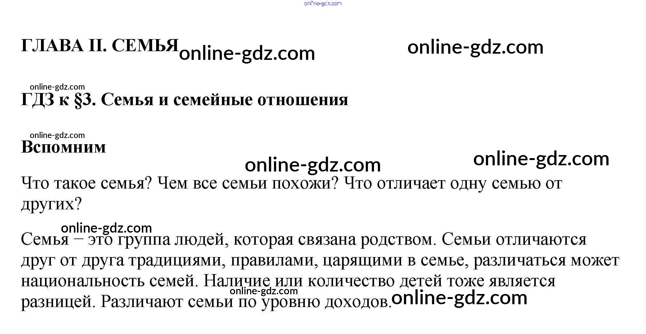 Готовые домашние задания по Обществознанию за 5 класс Учебник Боголюбов, Виноградова 2013 - Вспомним §3. Семья и семейные отношения 1