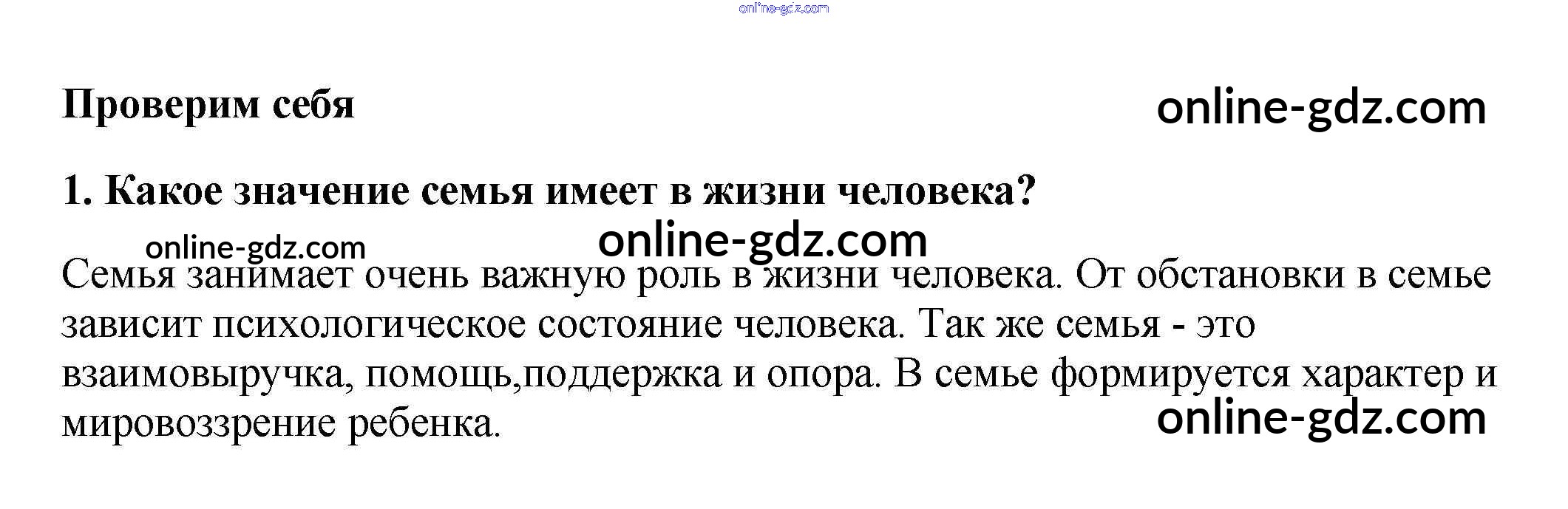 Готовые домашние задания по Обществознанию за 5 класс Учебник Боголюбов, Виноградова 2013 - Проверим себя §3. Семья и семейные отношения 1