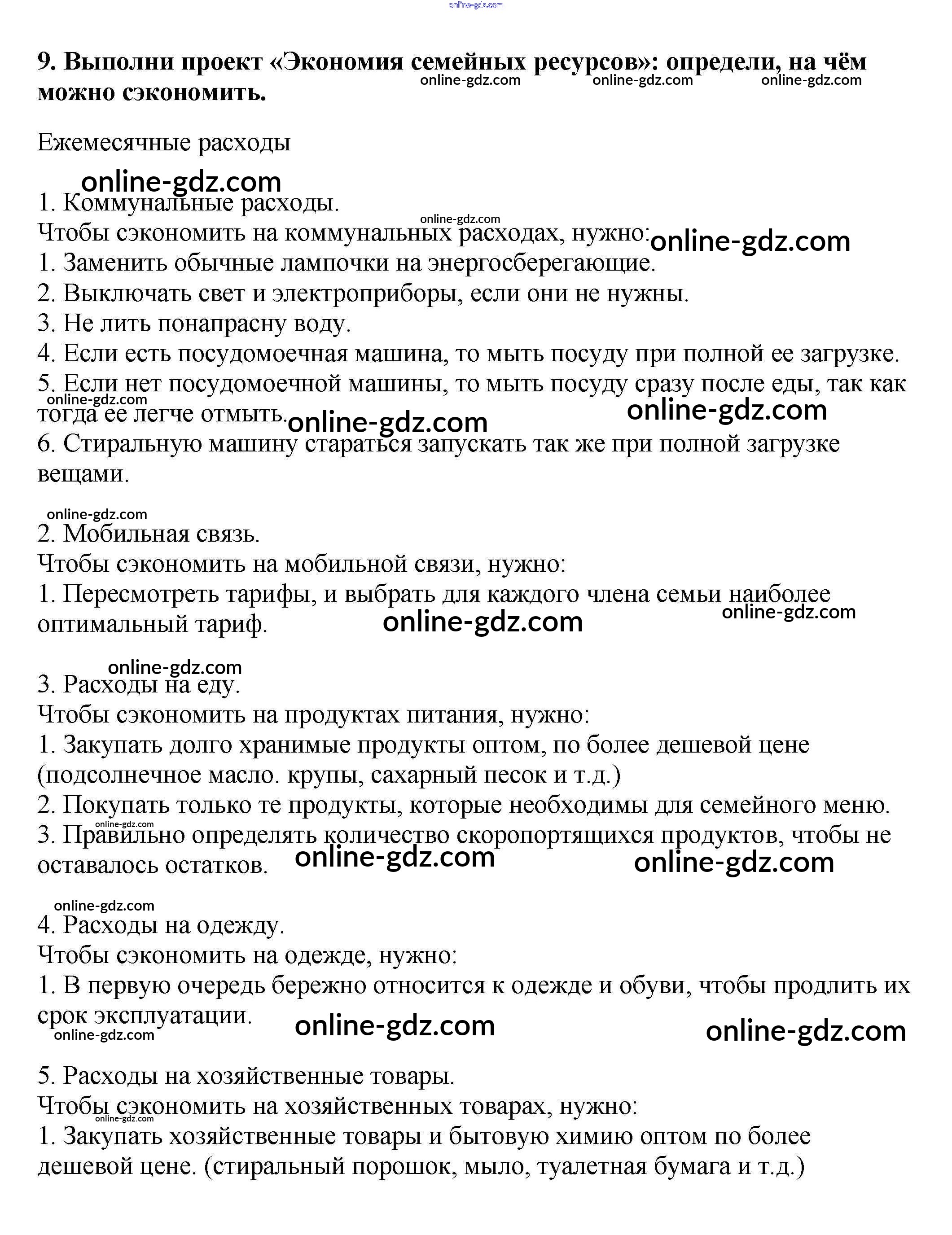 Готовые домашние задания по Обществознанию за 5 класс Учебник Боголюбов, Виноградова 2013 - В классе и дома §4. Семейное хозяйство 9