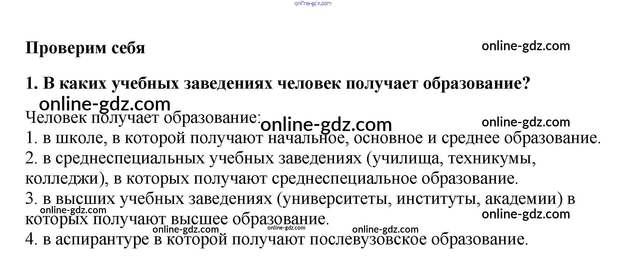 Готовые домашние задания по Обществознанию за 5 класс Учебник Боголюбов, Виноградова 2013 - Проверим себя §6. Образование в жизни человека 1