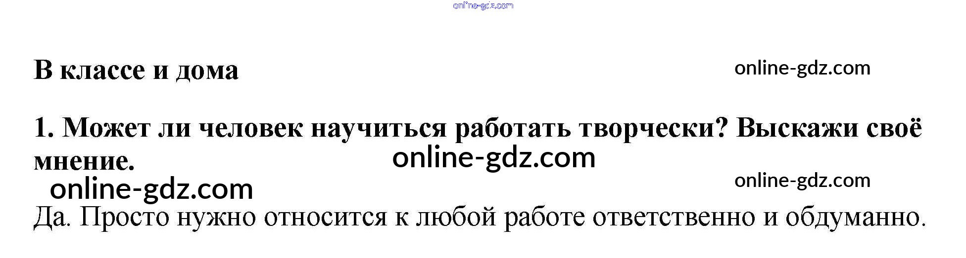 Готовые домашние задания по Обществознанию за 5 класс Учебник Боголюбов, Виноградова 2013 - В классе и дома §10. Труд и творчество 1