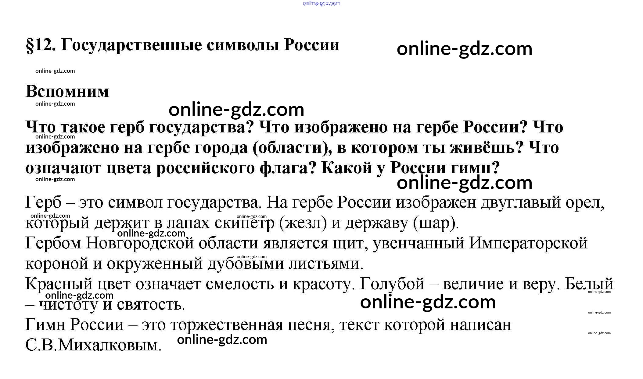 Готовые домашние задания по Обществознанию за 5 класс Учебник Боголюбов, Виноградова 2013 - Вспомним §12. Государственные символы России 1