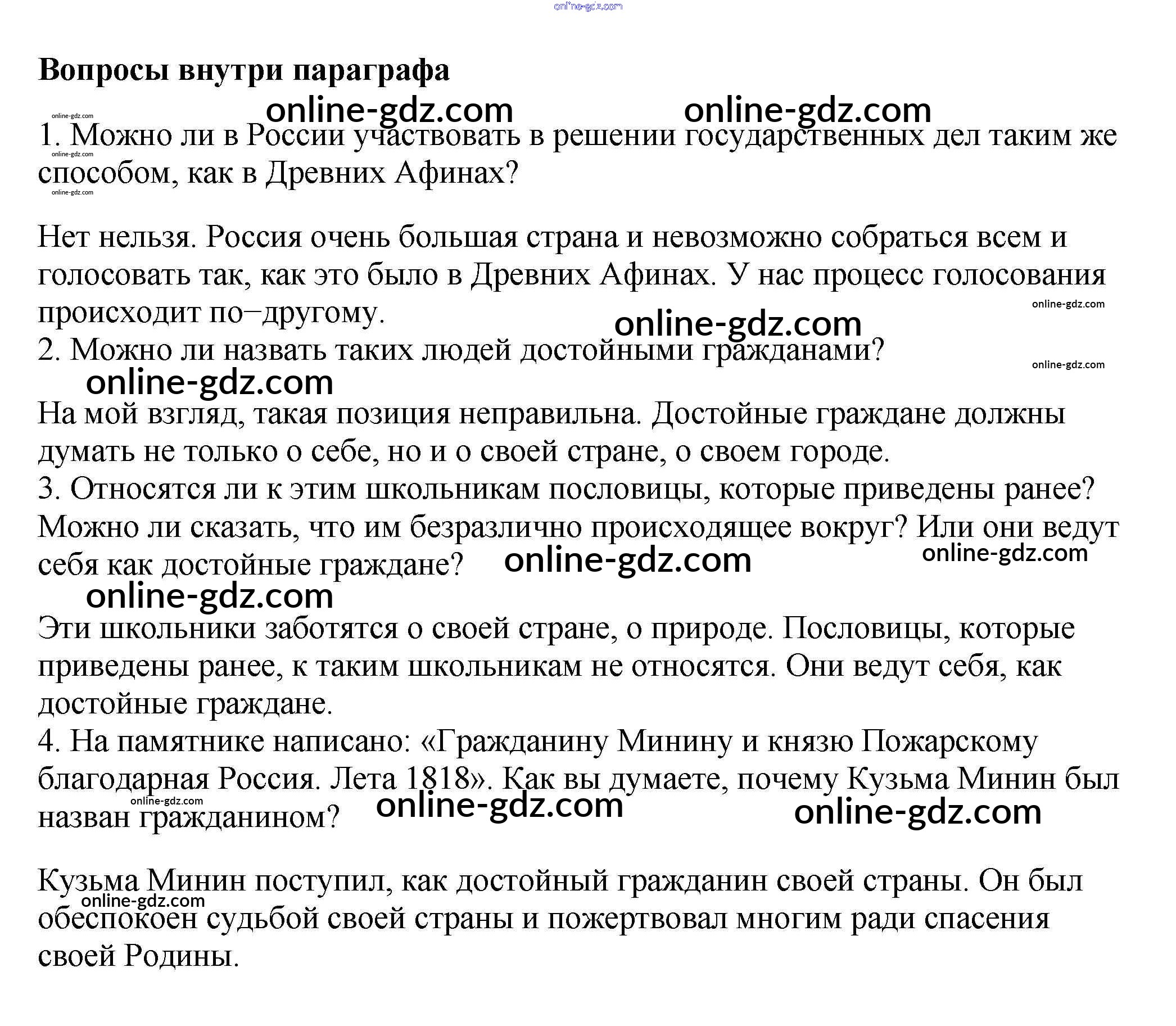 Готовые домашние задания по Обществознанию за 5 класс Учебник Боголюбов, Виноградова 2013 - Вопросы внутри параграфа §13. Гражданин России 1