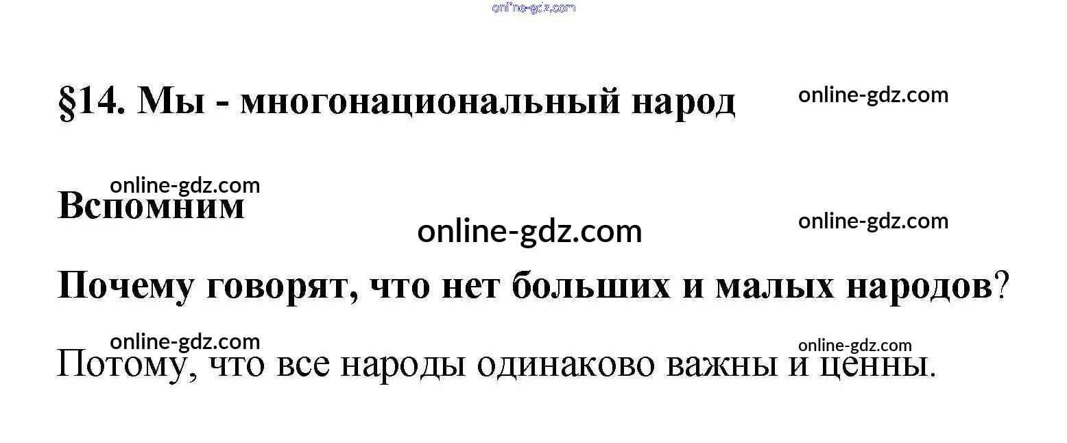 Готовые домашние задания по Обществознанию за 5 класс Учебник Боголюбов, Виноградова 2013 - Вспомним §14. Мы — многонациональный народ 1