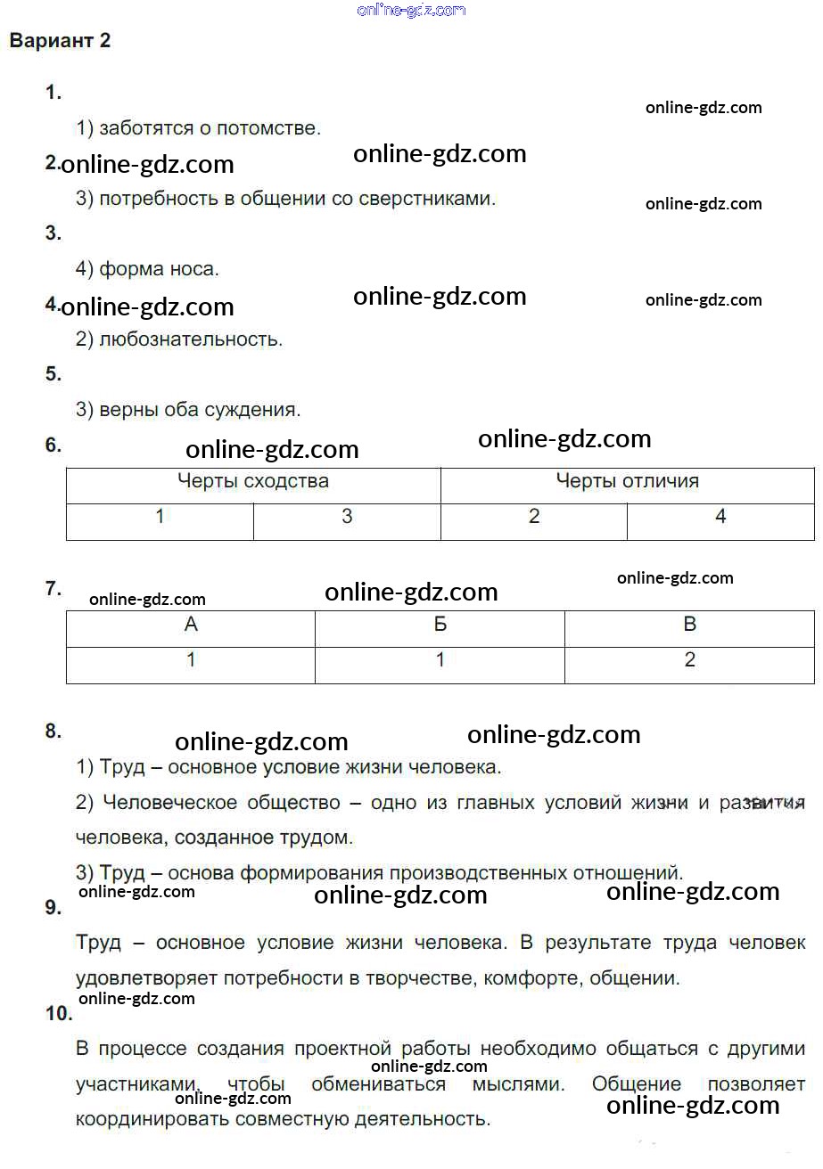 Готовые домашние задания по Обществознанию за 5, 6 класс Тематический контроль Лобанов 2017 - КР №1. Личность. Межличностные отношения Контрольные работы вариант-2