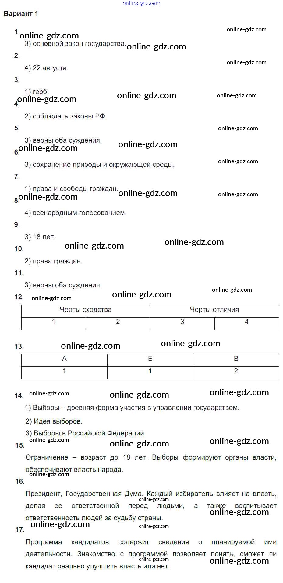 Готовые домашние задания по Обществознанию за 5, 6 класс Тематический контроль Лобанов 2017 - КР №3. Стартовая контрольная работа Контрольные работы вариант-1