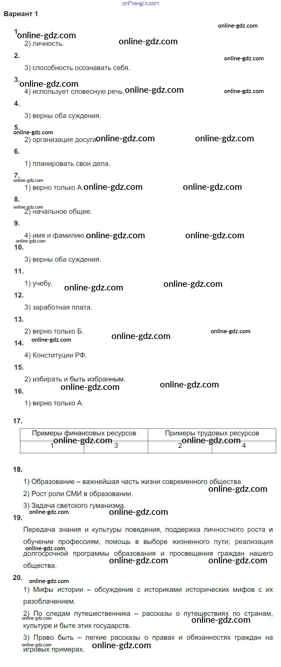 Готовые домашние задания по Обществознанию за 5, 6 класс Тематический контроль Лобанов 2017 - Итоговая контрольная работа Контрольные работы вариант-1