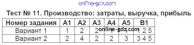Готовые домашние задания по Обществознанию за 7 класс Контрольно-измерительные материалы (КИМ) Волкова 2017 - Тесты Тест №11. Производство - затраты, выручка, прибыль