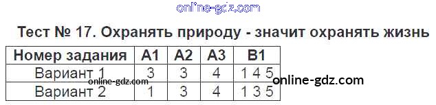 Готовые домашние задания по Обществознанию за 7 класс Контрольно-измерительные материалы (КИМ) Волкова 2017 - Тесты Тест №17. Охранять природу - значит охранять жизнь