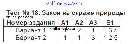 Готовые домашние задания по Обществознанию за 7 класс Контрольно-измерительные материалы (КИМ) Волкова 2017 - Тесты Тест №18. Закон на страже природы