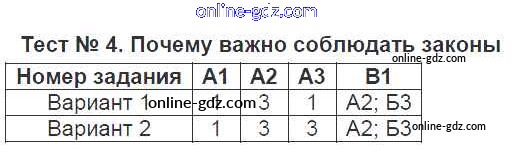 Готовые домашние задания по Обществознанию за 7 класс Контрольно-измерительные материалы (КИМ) Волкова 2017 - Тесты Тест №4. Почему важно соблюдать законы
