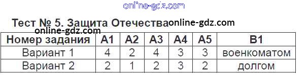 Тест №5. Защита Отечества