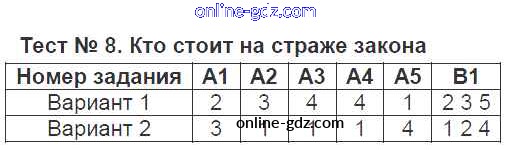 Готовые домашние задания по Обществознанию за 7 класс Контрольно-измерительные материалы (КИМ) Волкова 2017 - Тесты Тест №8. Кто стоит на страже закона
