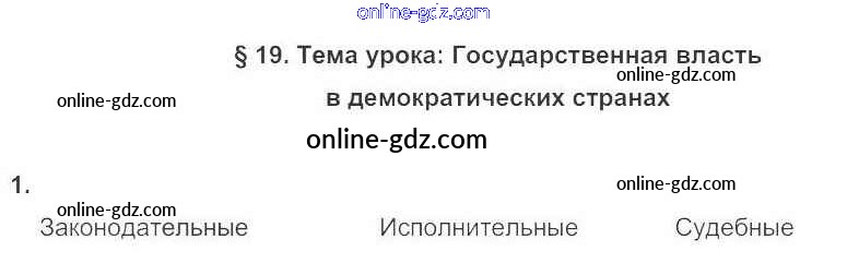Готовые домашние задания по Обществознанию за 7 класс Рабочая тетрадь Соболева Алгоритм успеха 2018 - § 19. Государственная власть в демократических странах стр. 62
