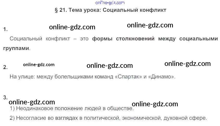 Готовые домашние задания по Обществознанию за 7 класс Рабочая тетрадь Соболева Алгоритм успеха 2018 - § 21. Социальный конфликт стр. 69