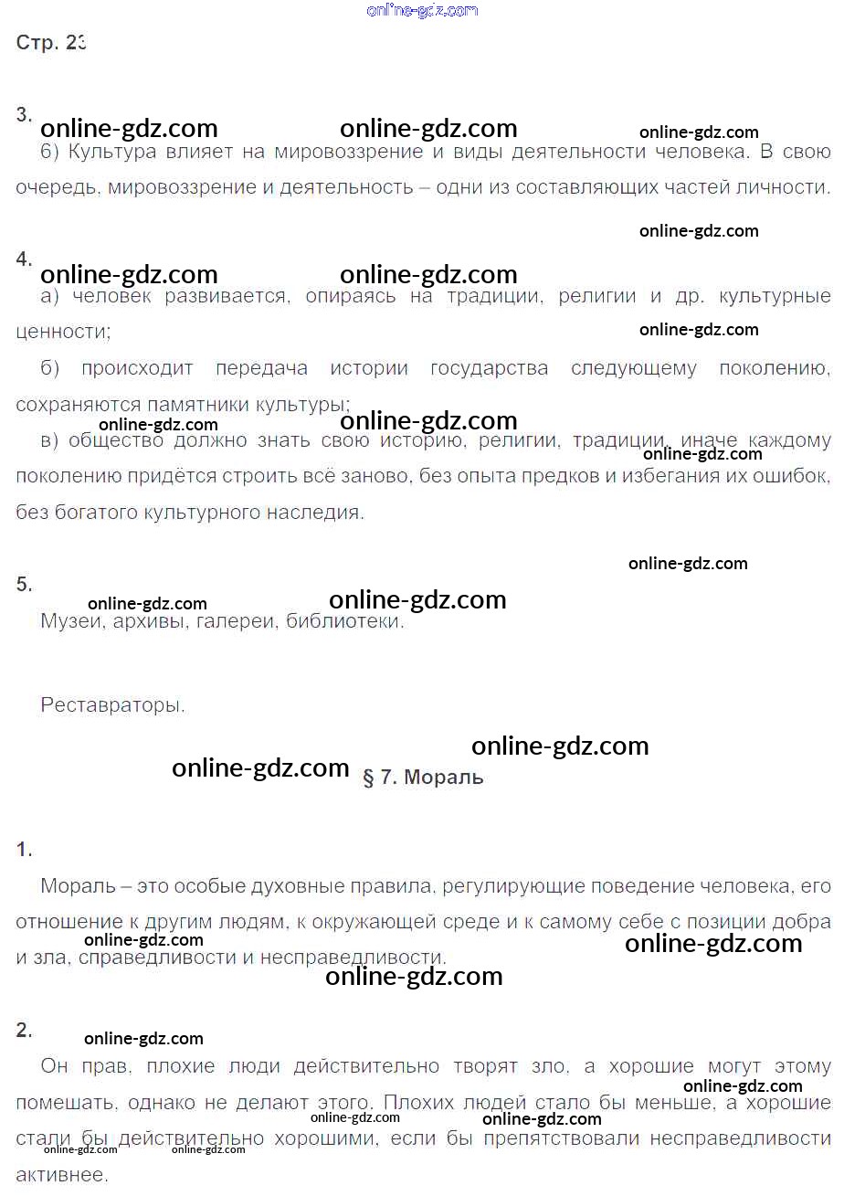 Готовые домашние задания по Обществознанию за 8 класс Рабочая тетрадь Котова, Лискова 2017 - Глава 2. Сфера духовной культуры стр.23