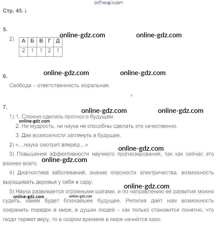Готовые домашние задания по Обществознанию за 8 класс Рабочая тетрадь Котова, Лискова 2017 - Глава 2. Сфера духовной культуры стр.45