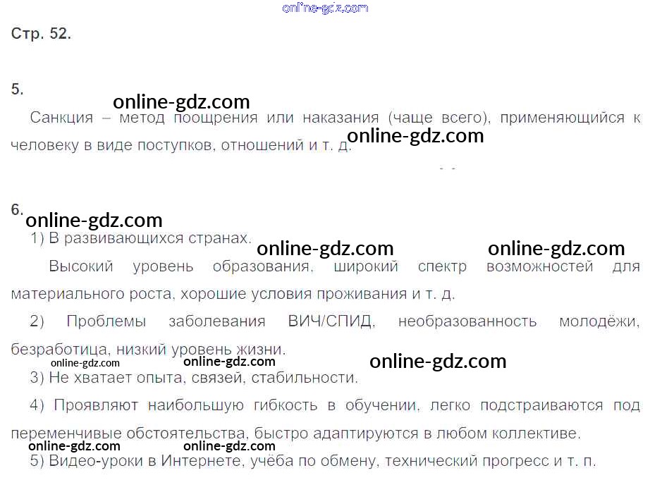 Готовые домашние задания по Обществознанию за 8 класс Рабочая тетрадь Котова, Лискова 2017 - Глава 3. Социальная сфера стр.52