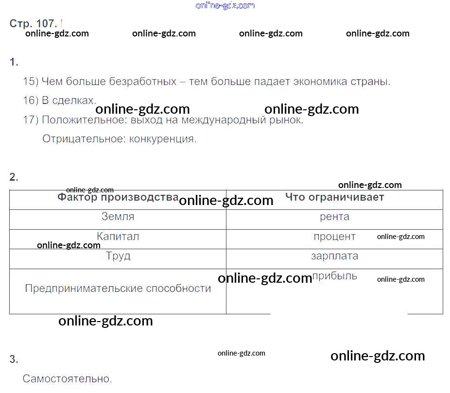 Готовые домашние задания по Обществознанию за 8 класс Рабочая тетрадь Котова, Лискова 2017 - Глава 4. Экономика стр.107