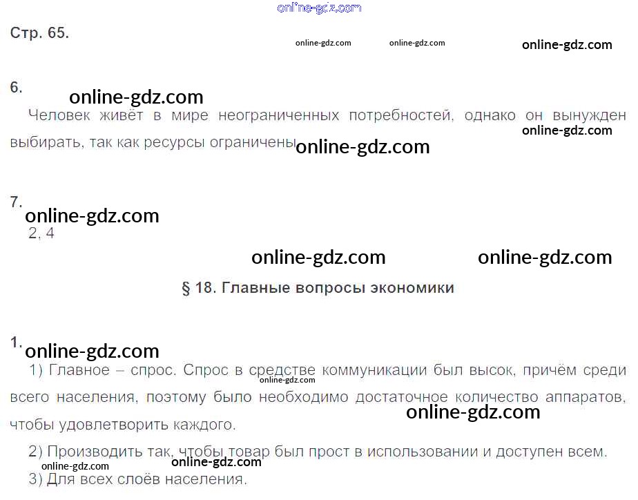 Готовые домашние задания по Обществознанию за 8 класс Рабочая тетрадь Котова, Лискова 2017 - Глава 4. Экономика стр.65