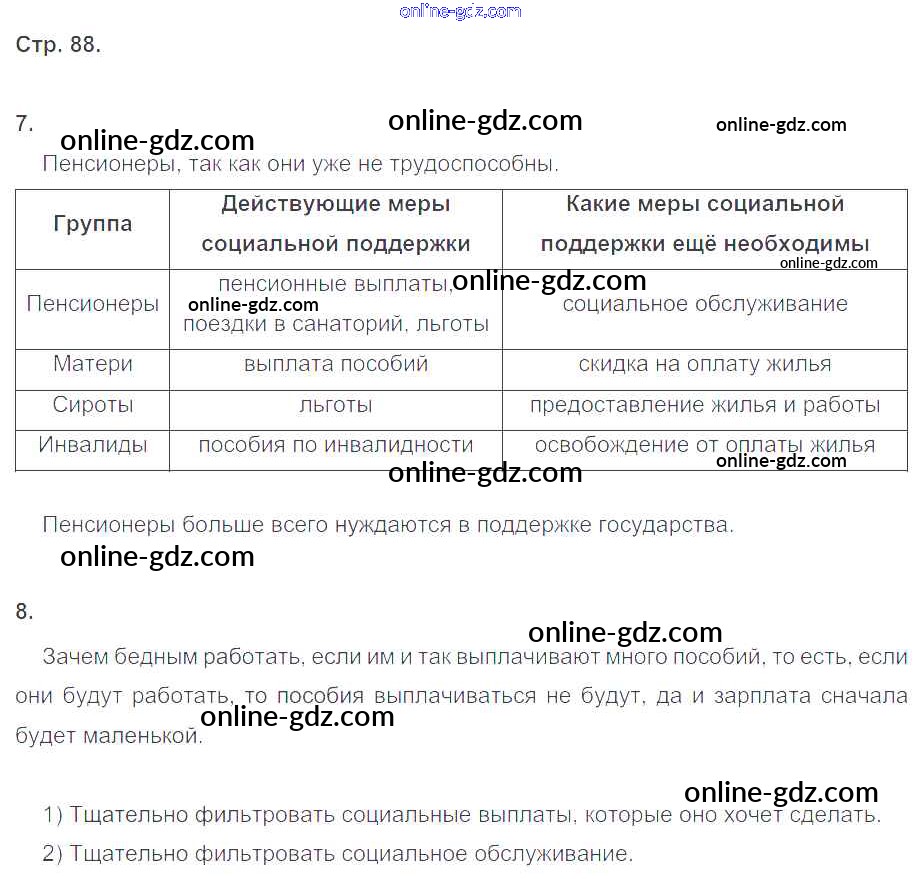 Готовые домашние задания по Обществознанию за 8 класс Рабочая тетрадь Котова, Лискова 2017 - Глава 4. Экономика стр.88