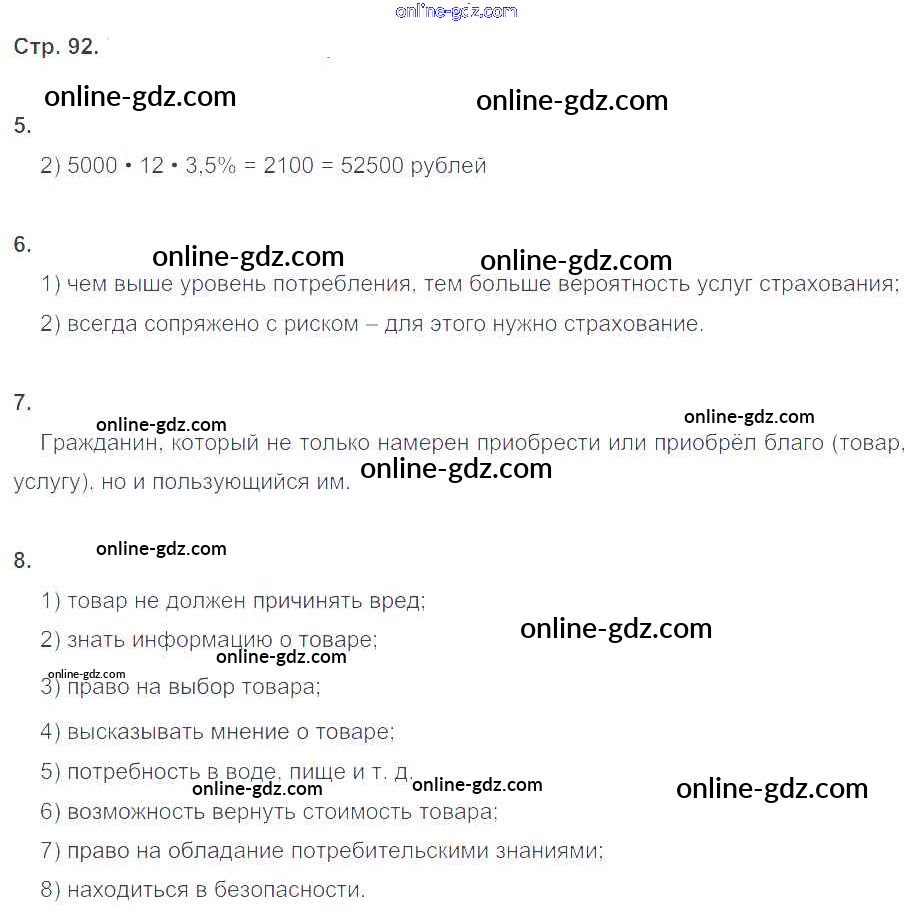 Готовые домашние задания по Обществознанию за 8 класс Рабочая тетрадь Котова, Лискова 2017 - Глава 4. Экономика стр.92