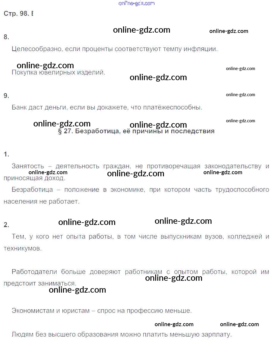 Готовые домашние задания по Обществознанию за 8 класс Рабочая тетрадь Котова, Лискова 2017 - Глава 4. Экономика стр.98