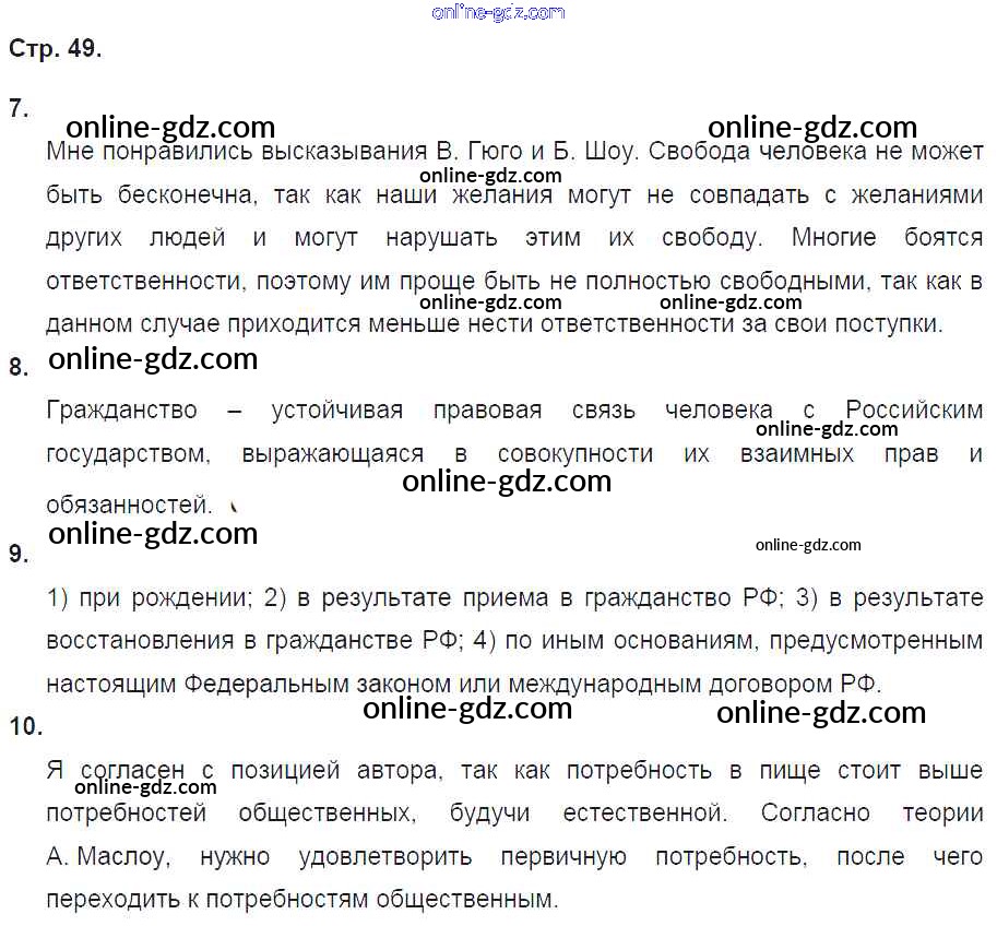 Готовые домашние задания по Обществознанию за 8 класс Рабочая тетрадь Соболева, Воронцов Алгоритм успеха 2018 - Страницы 49