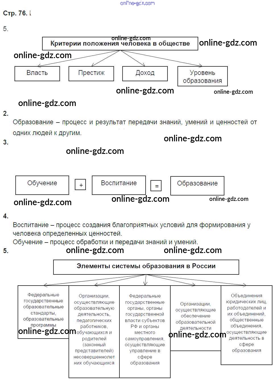 Готовые домашние задания по Обществознанию за 8 класс Рабочая тетрадь Соболева, Воронцов Алгоритм успеха 2018 - Страницы 76
