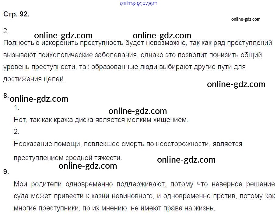 Готовые домашние задания по Обществознанию за 8 класс Рабочая тетрадь Соболева, Воронцов Алгоритм успеха 2018 - Страницы 92