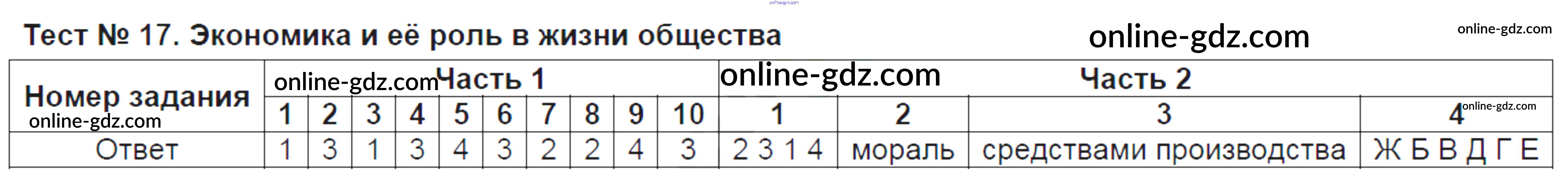 Готовые домашние задания по Обществознанию за 8 класс Тесты Краюшкина УМК 2017 - Тесты Тест №17. Экономика и её роль в жизни общества