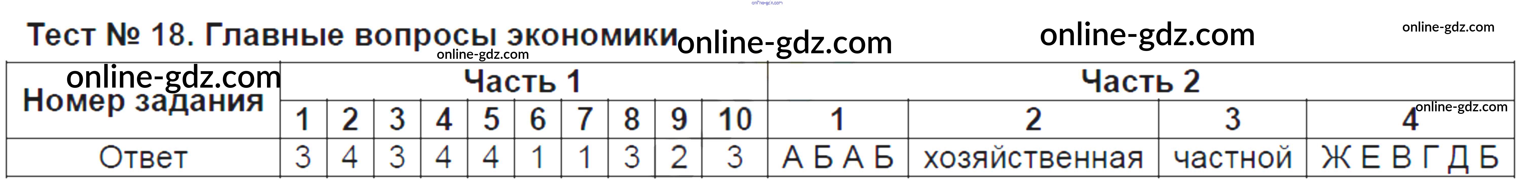 Готовые домашние задания по Обществознанию за 8 класс Тесты Краюшкина УМК 2017 - Тесты Тест №18. Главные вопросы экономики