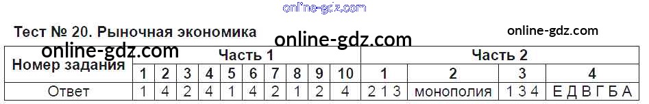 Тест №20. Рыночная экономика