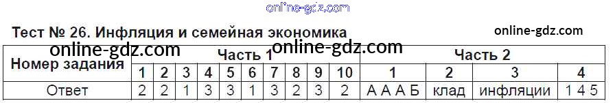Готовые домашние задания по Обществознанию за 8 класс Тесты Краюшкина УМК 2017 - Тесты Тест №26. Инфляция и семейная экономика