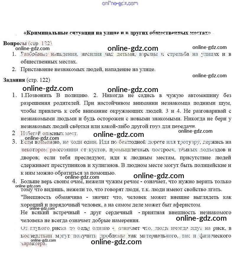 Готовые домашние задания по ОБЖ за 5 класс Учебник Фролов, Шолох 2015 - Страницы 122